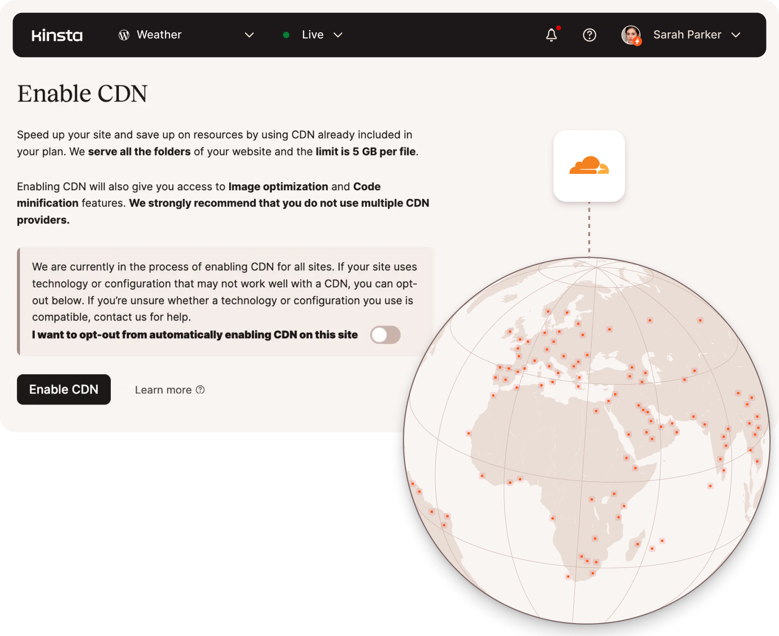 Ospita i tuoi siti WordPress sui server più veloci di Google Cloud (macchine virtuali C3D e C2) e scegli dove distribuirli tra i 37 data center disponibili. Inoltre, il nostro CDN dispone di 260+ POP per garantire ai tuoi siti web una presenza globale e una maggiore velocità.