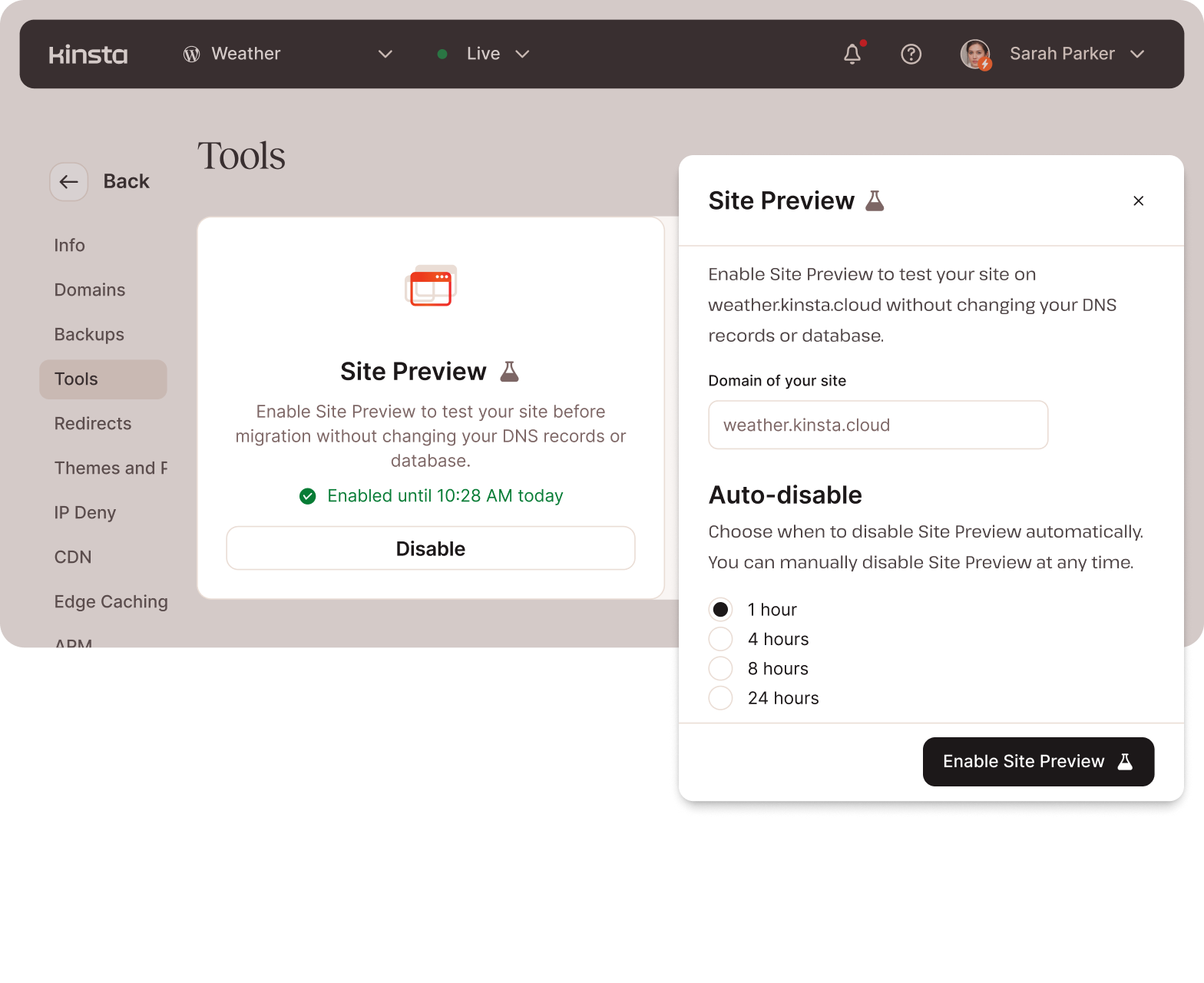 - Strumento di anteprima del sito per testare i siti senza aggiornare il DNS