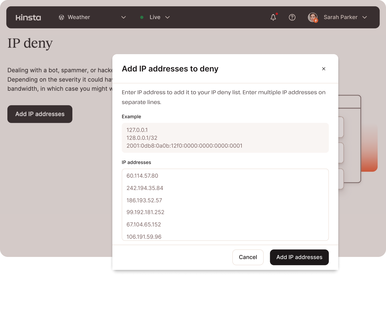 Todos os sites estão protegidos pelo firewall da Kinsta, pelo Cloudflare com proteção DDoS Enterprise e pelo firewall do Google Cloud.