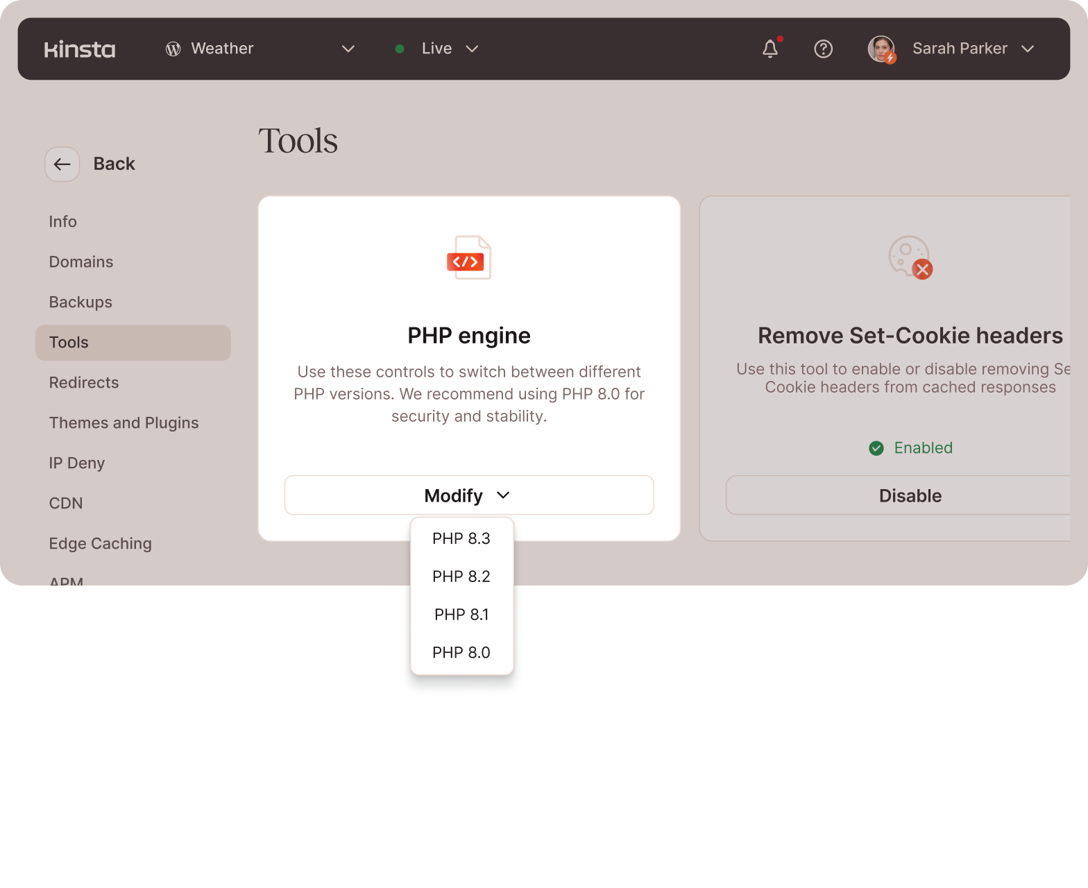 Massimizza le prestazioni del tuo sito con il supporto di Kinsta alle ultime versioni di PHP.